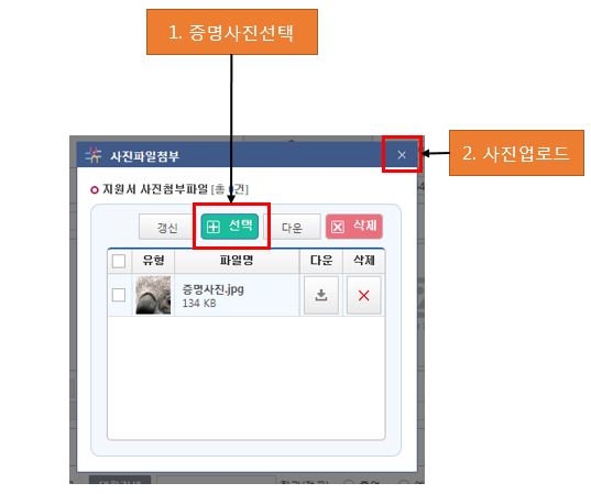 사진파일은 지원과정,지원학과,성명, 주민등록번호가 입력되어야 등록가능합니다.